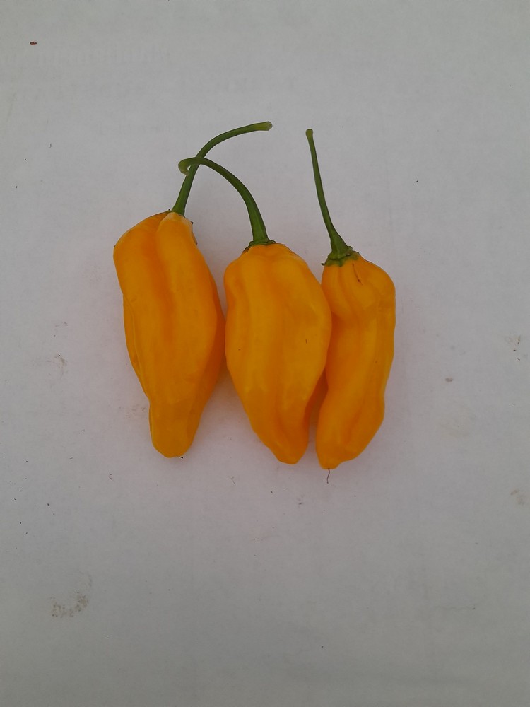 Aji Umba Yellow è un peperoncino originario del Suriname in Sud America con piccantezza molto elevata. La pianta si presenta con rami eretti e vigorosi. I frutti hanno aspetto simile ad un Habanero, con un colore che a maturazione passa dal verde chiaro al giallo. Il frutto ha un profumo che ricorda la frutta ma più delicato del precedente, la piccantezza è molto elevata, scoville compreso tra 150.000 e 300.000. La pianta si presta alla coltivazione in vaso raggiungendo un’altezza di 70-80 cm, mentre in terra si sviluppa maggiormente, raggiungendo anche il metro di lunghezza. La produzione è abbondantissima, i frutti tradizionalmente vengono usati freschi ed in mescolanza con madame Janette. Da Provare.