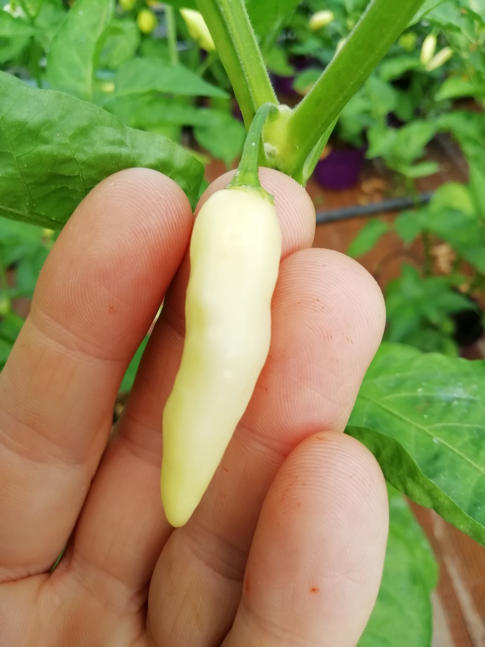 Coyote Zan White è un peperoncino originario del Brasile. La pianta si presenta mediamente vigorosa e si presta alla coltivazione sia in vaso che in piena terra. I rami si caricano di numerosissimi frutti simili ad un dente di coyote per forma e per colore, infatti sono color bianco avorio. I frutti hanno una piccantezza elevata, scoville compreso tra 60.000 e 100.000. Il gusto del frutto è molto interessante ricorda la frutta ed è leggermente aromatico e fresco. Per intenditori del piccante e per conferire alle preparazioni qualcosa di speciale. Da provare.
