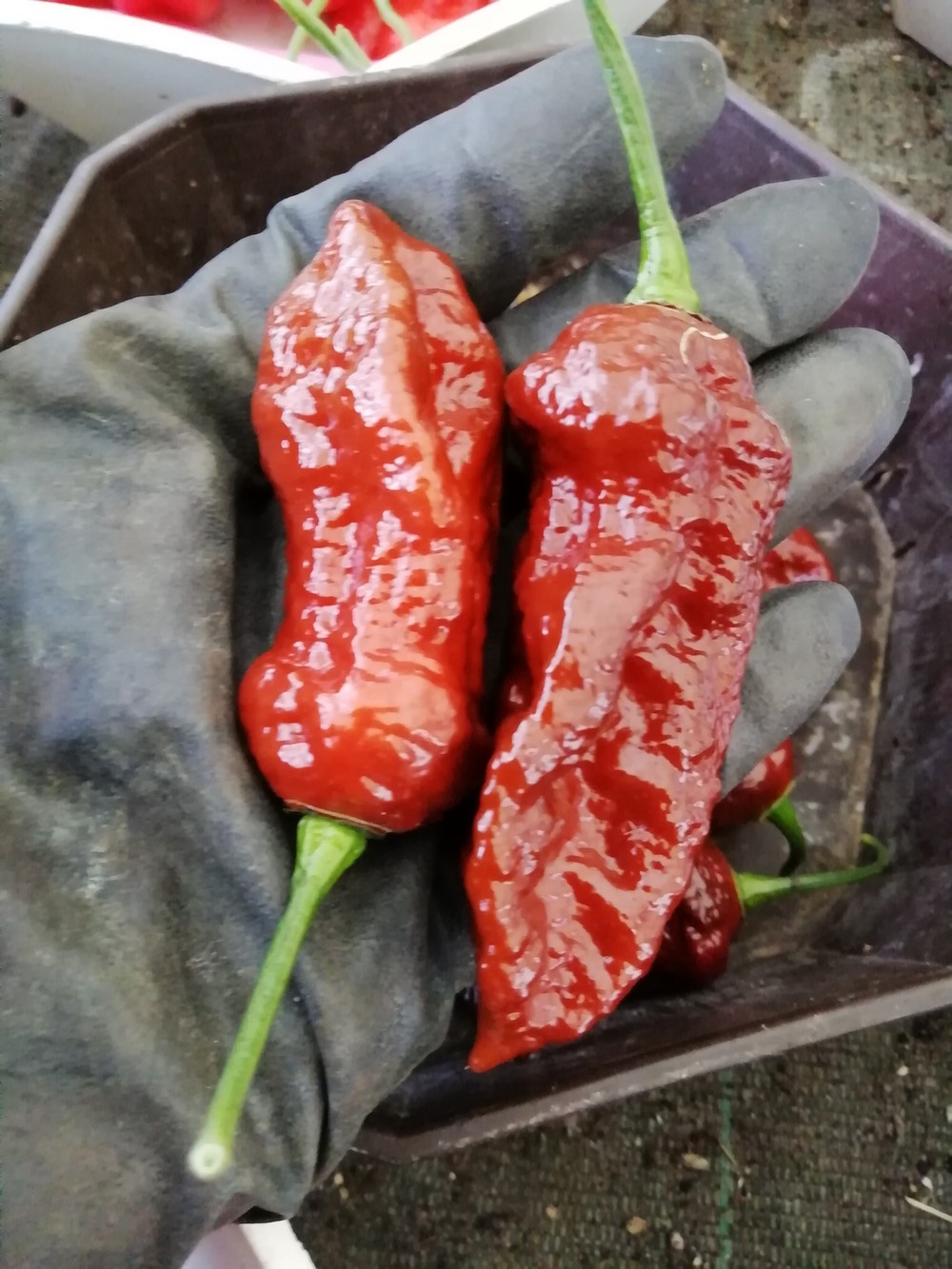 Jay’s Chocolate è un peperoncino originario della Pennsylvania (USA). La varietà è stata ottenuta dal breeder americano Jay Weaver incrociando un Bhut Jolokia con un Trinidad Scorpion. La pianta si presenta mediamente vigorosa e si adatta bene alla coltivazione in vaso ed anche alla coltivazione in piena terra. I frutti sono di forma allungata, rugosi e di uno spettacolare colore marrone quando sono maturi, lunghezza 5-6 centimetri. Produzione abbondante. La piccantezza è nucleare, scoville compreso tra 800.000-900.000. Il sapore è mozzafiato tipico dei Bhut, ma il profumo è tutto dei Trinidad. Varietà che non può mancare nel giardino dell’appassionato di piccante.