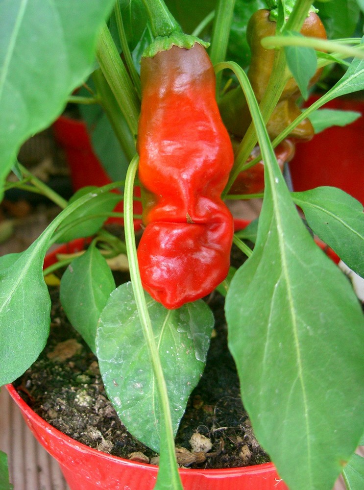 Peter Pepper Rosso è un peperoncino originario degli Stati Uniti d’America. La pianta è mediamente vigorosa, altezza 30-40 centimetri, si può coltivare sia in vaso che in piena terra. I frutti hanno una forma fallica, e da acerbi sono verdi, mentre da maturi diventano rossi. La piccantezza è bassa, scoville compreso tra 4.000 e 6.000. Peperoncino divertente. Chiamato anche Penis Pepper.